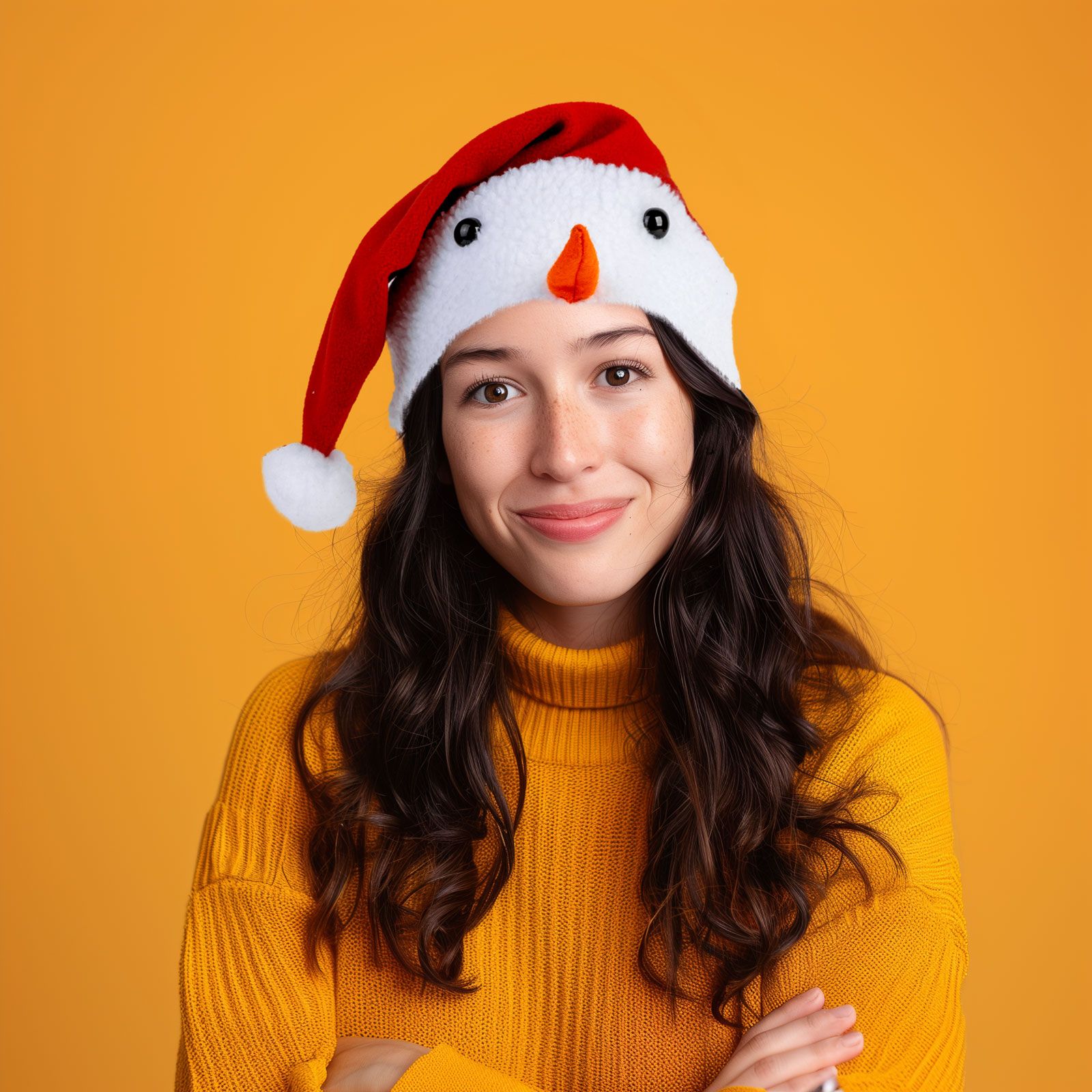 Karácsonyi mikulás sapka - Hóember mintával - 30 x 45 cm