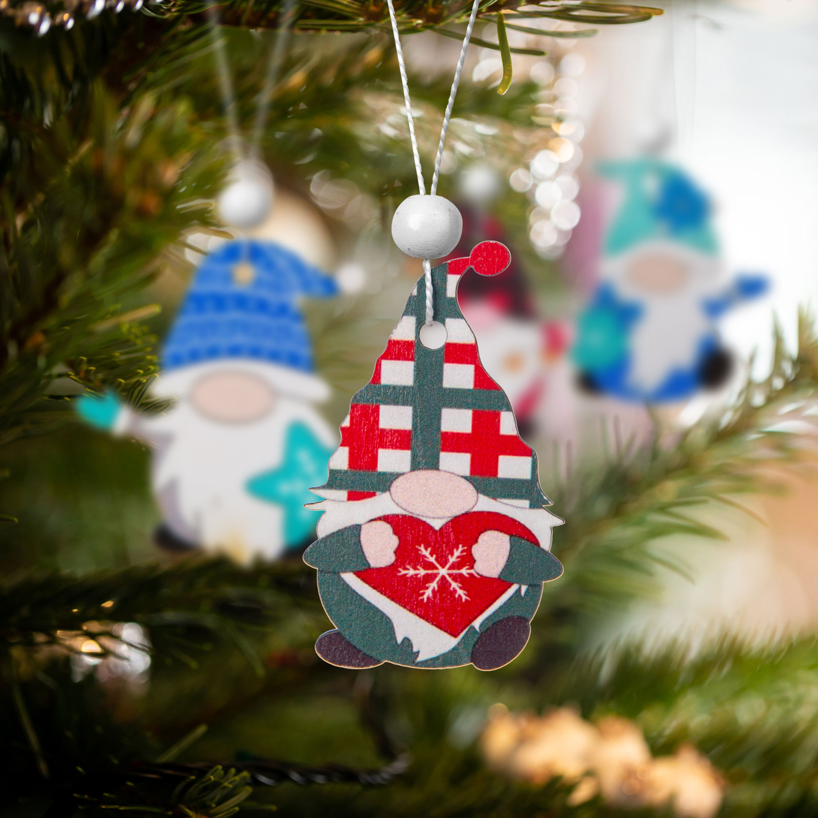 Aranyos karácsonyfadísz szett fából. Teremtsen meghitt hangulatot, díszítse karácsonyfáját természetes anyagokból készült díszekkel. Festett, összesen 12 db, négyféle skandináv manó figura egy csomagban.