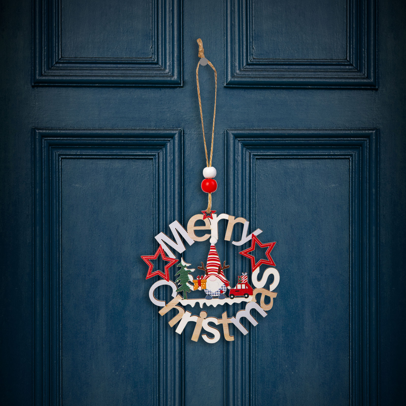Ez a gyönyörű fából készült manó figurás dísz tökéletes kiegészítője lehet a karácsonyi dekorációnak otthonában. Szépen kidolgozott, aranyos manó figurák, amelyek "Merry Christmas" feliratban állnak, ami az ünnepi hangulatot és vidámságot sugallja. A fából készült díszek, melegséget és természetességet kölcsönöznek bármilyen ünnepi dekorációnak. A kidolgozott, részletesgazdag festés gondoskodik az aprólékos és szemet gyönyörködtető megjelenésről. A figura egy erős, de könnyű fából készült darab, amely felakasztható az otthona különböző pontjain.