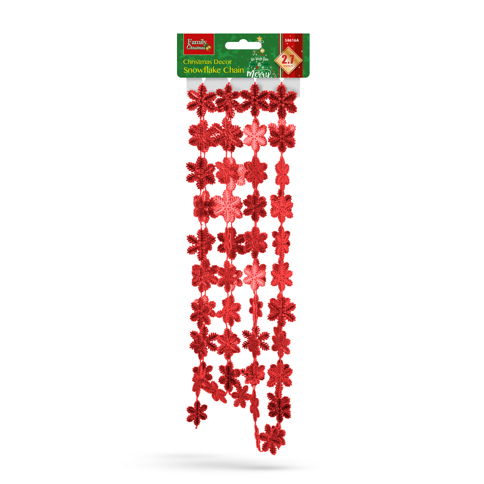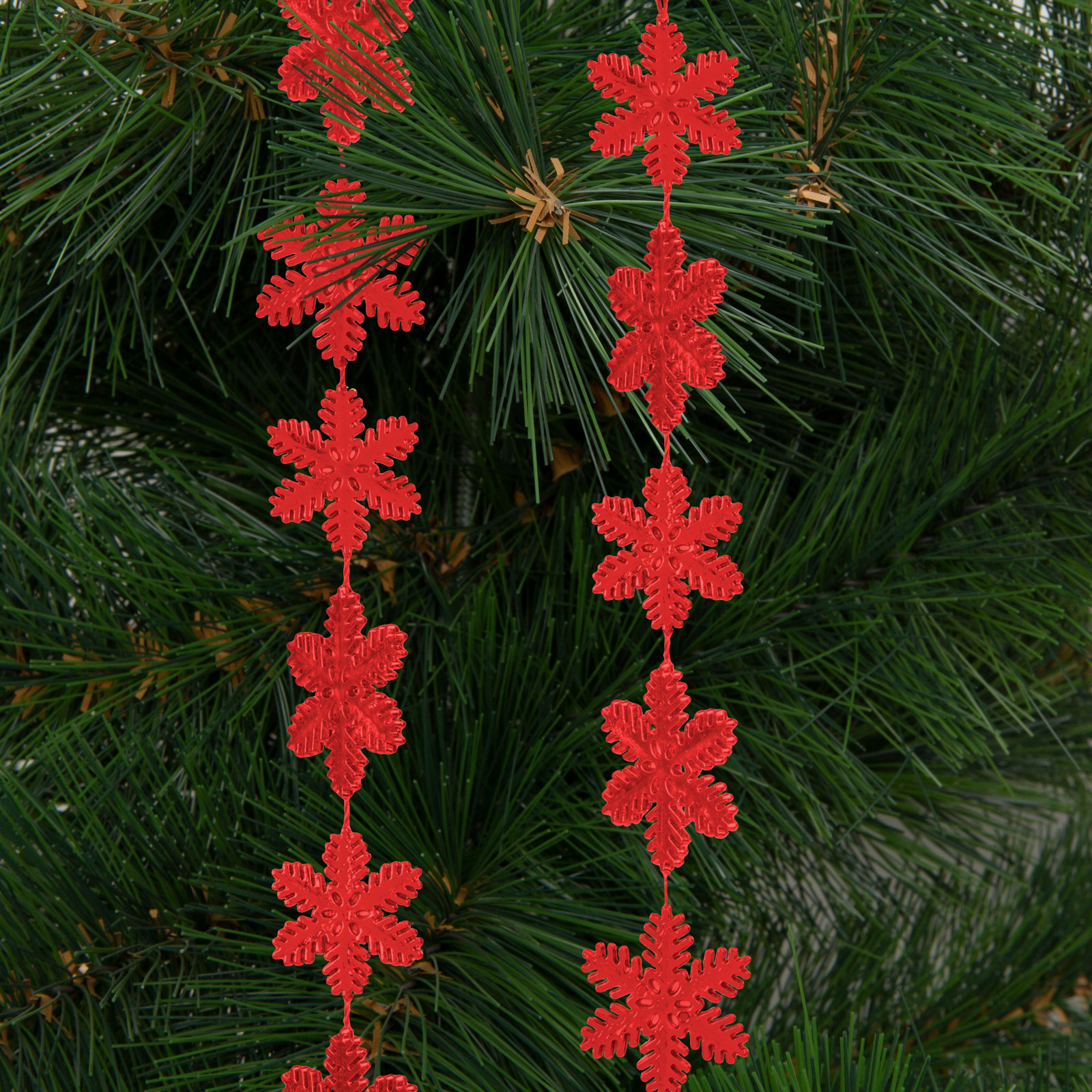 Karácsonyi girland - hópehely - 2,7 m - piros