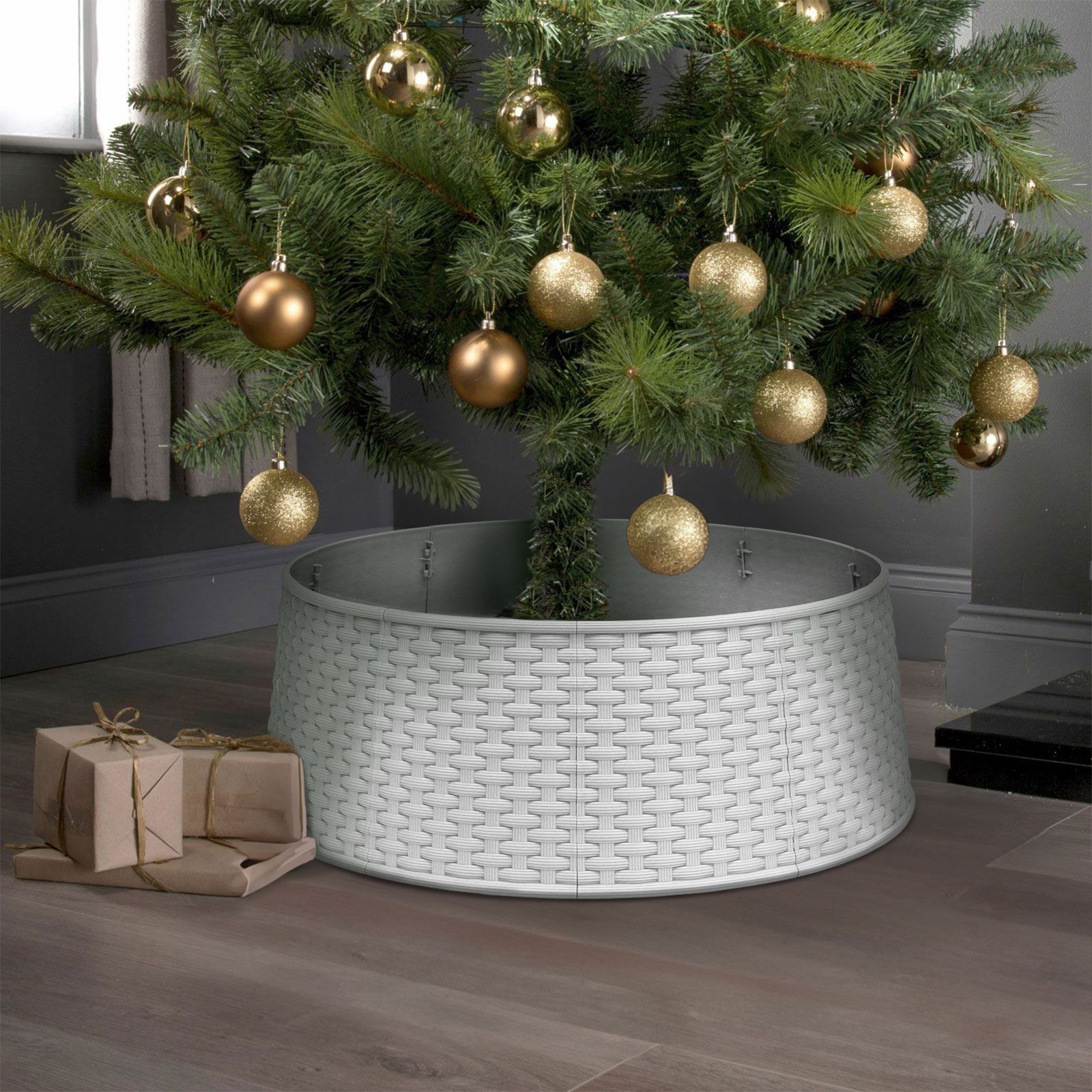 Karácsonyfatalp takaró - fehér, műanyag - 65 x 23 cm